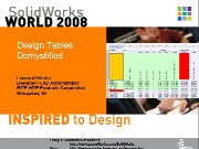 - Summary: This is a ground up look at creating Design Tables in SolidWorks. It starts with basic design table creation and editing, and moves on to discuss useful methods used to create intelligent and automated design tables. . The zip/ppt download also includes some sample models.